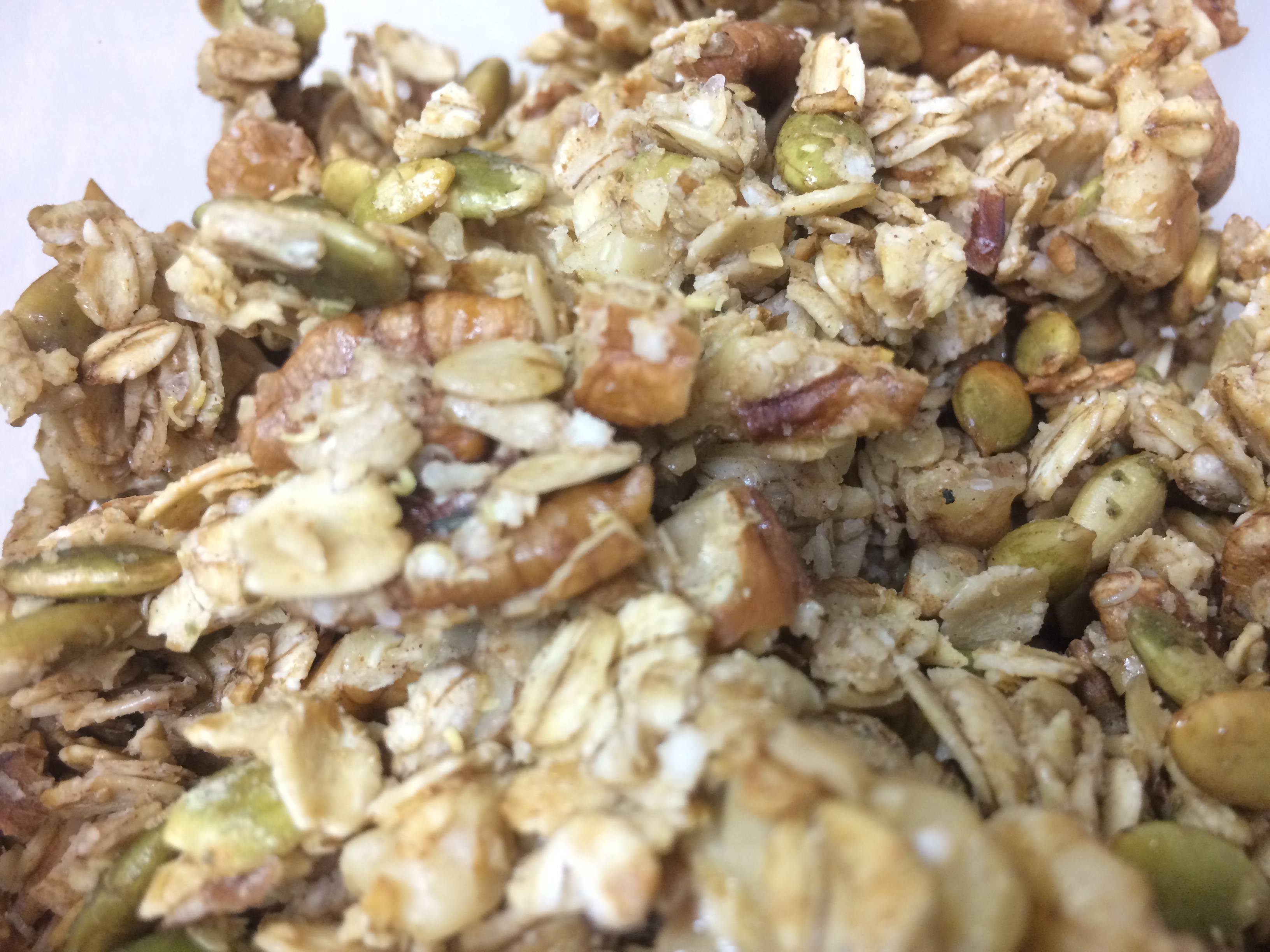 - Combine oats, pecans, walnuts, pumpkin seeds and quinoa in a bowl.